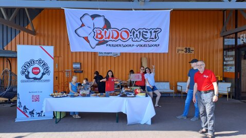 An den Start gingen so um die 50 selbstgebackene Kuchen, die liebevoll von unseren Mitgliedern und Eltern gebacken wurden. Am Verkaufstag fanden sich 10 hartnäckige Verkäufer ein, die die Kuchen restlos an den Mann und Frau brachten. Gemeinsam schafften wir es eine Spendensumme von 1021,90 Euro einzunehmen. Dieses Geld kommt den Mitgliedern in Form von neuen Trainingsmittel zugute.
